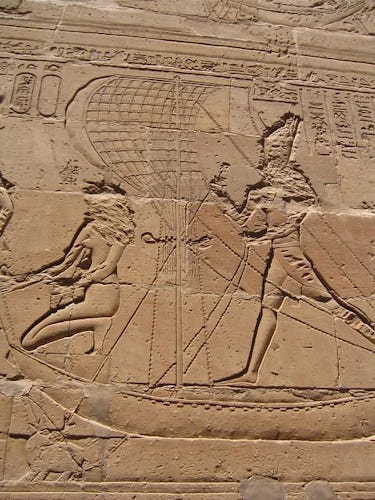 Within this same political and religious context, construction began in 237 BCE on a monumental new temple complex at Edfu in Upper Egypt. Dedicated to Horus, this temple would become the most extensive and theologically elaborate Horus sanctuary in all of Egypt. Its walls preserve a detailed mythological program carved in relief and accompanied by long hieroglyphic inscriptions, particularly on the inner faces of the eastern and western enclosure walls. These reliefs do not merely allude to myth; they present a carefully staged sacred drama known as the Triumph of Horus, which was ritually reenacted and doctrinally authoritative.