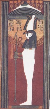 This new reading allows the emergence of Sokar to be understood not as a generic funerary god with roots in fertility and agriculture, but as the ritual crystallization of a specific historical memory. What begins here as the river-borne procession of a wrapped royal body beneath the falcon god’s protection gradually acquires a name, a festival, and eventually an iconographic synthesis in which falcon and corpse merge into a single mummiform being. In this sense, the so-called “god” Sokar is not the origin of the ritual, but its personification, born from repeated commemorative practice. Only much later does the Sokar tradition naturally merge back into the Osiris mythos that finally supplies the underlying narrative and cosmic meaning… to what began as the urgent, politically-charged problem of dealing with the trauma of a legendary yet brutally murdered founding king.